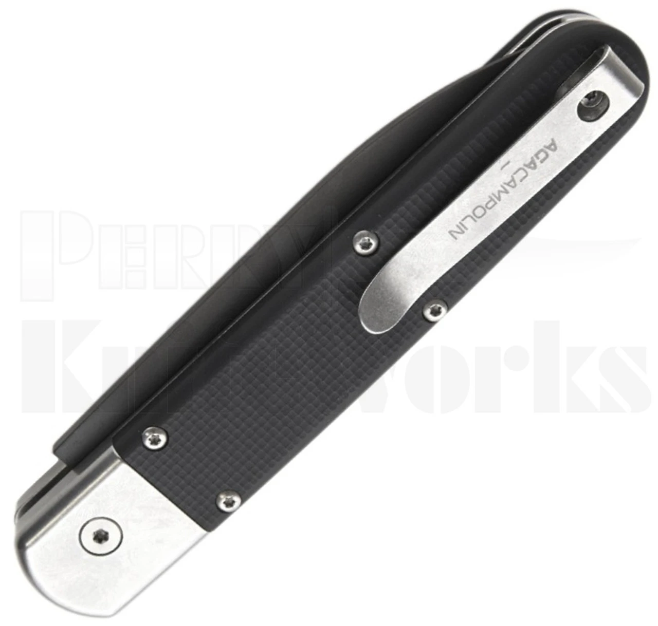 The AGA Campolin the Baron Elite is an automatic knife that is the modern evolution of the Baron build with the same leverlock mechanism like the successful “Zero”. It has N690Co stainless steel drop point blade with a black PVD finish and solid stonewashed AISI 420 steel liners and bolsters. The double spring gives faster action and guarantees longer durability where the inverted lever ensures quick opening action. The handle is made of black G-10 with a 3d texture for a better grip and comes with a stainless steel pocket clip. The springs are very easy to replace and the Baron Elite comes with an extra spring in the carbon paper box.  *By purchasing this knife you are agreeing to our terms & conditions*