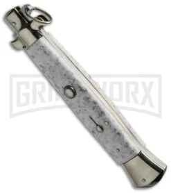 AGA Campolin 15″ Italian Stiletto White Ring Pull Automatic Knife – Bayonet