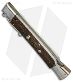 AGA Campolin 15″ Auto Italian Stiletto Knife Stag Horn/Brass (7″ Satin Bayo)